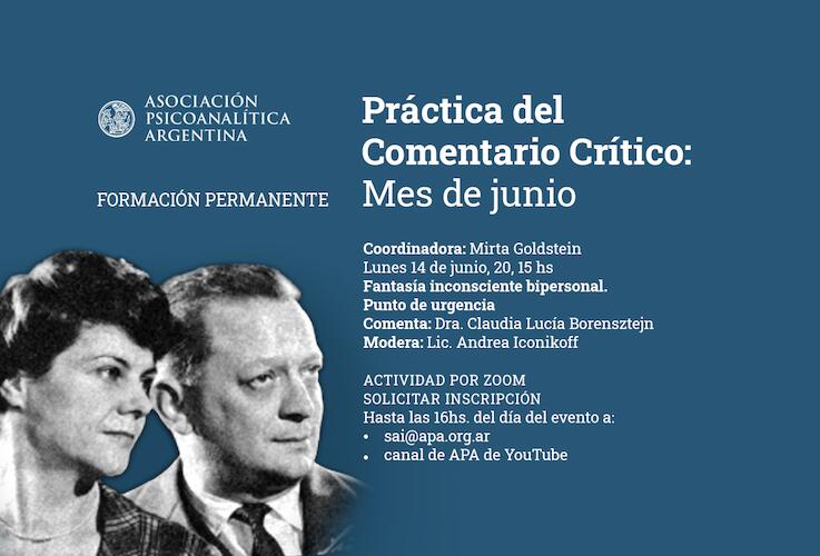 Relato de un análisis con la muerte en sala de espera. Trama y sentido de un tratamiento con fecha de fin Coordina: Andrea Ikonicoff Presenta/n: Marisol Bedoya (APdeA - Asunción - Paraguay), Valeria Corbella (APA), Azucena Tramontano (APA), las colegas de la APA Valeria Corbella y Azucena Tramontano, participarán como comentadoras en esta actividad que tendrá